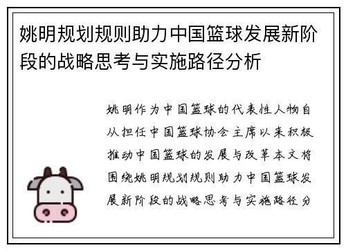 姚明,作为中国篮球的代表性人物和全球体育界的杰出领袖,以其卓越的才华、坚定的信念和无私的奉献精神,深深影响了无数人。本文旨在怀念姚明先师的伟大贡献与无私奉献精神,从四个方面进行详细阐述,包括他在篮球事业上的贡献、对青少年篮球发展的推动、在社会公益活动中的积极参与以及他对国际体育交流的重要影响。通过这些方面,我们不仅可以全面了解姚明先师所做出的巨大成就,还能感受到他那种永不放弃、不断追求卓越的精神力...